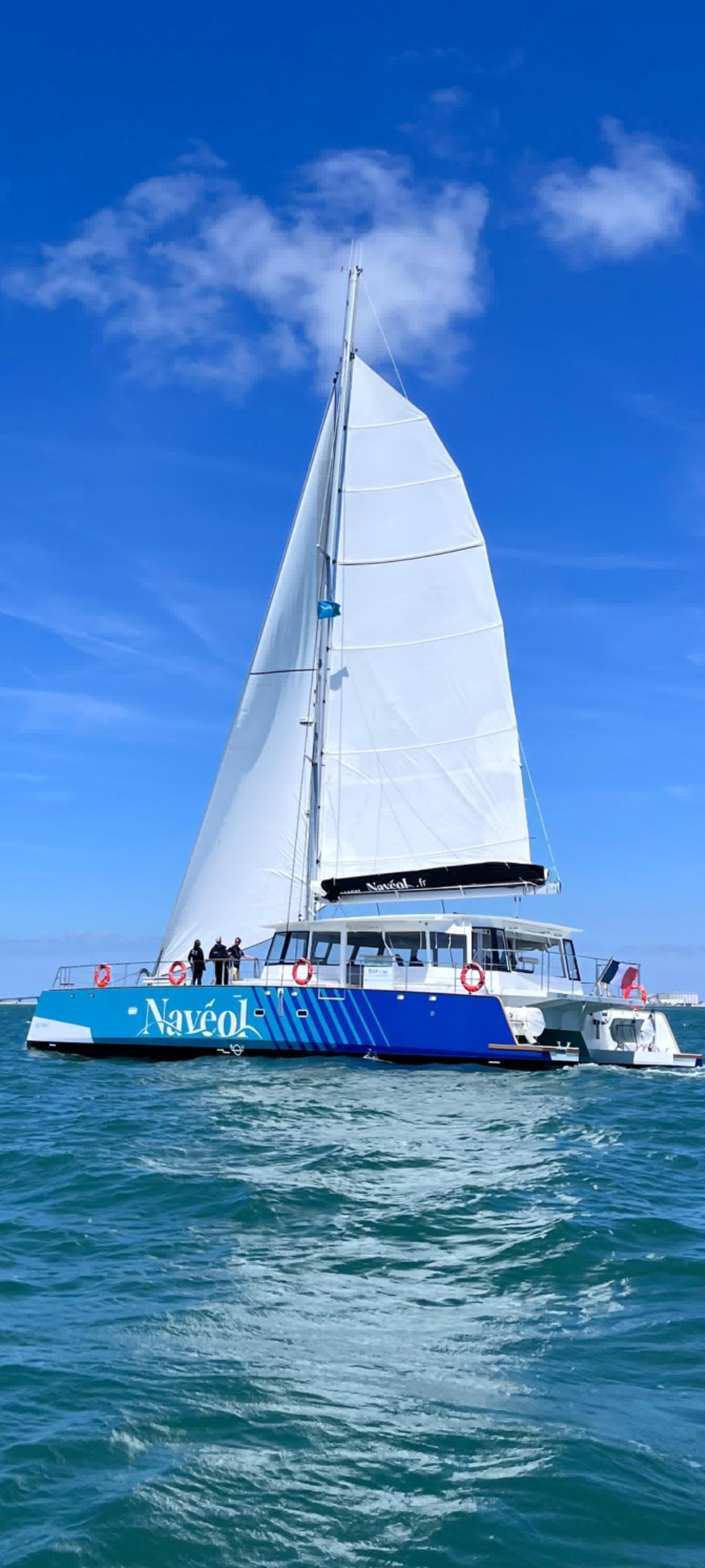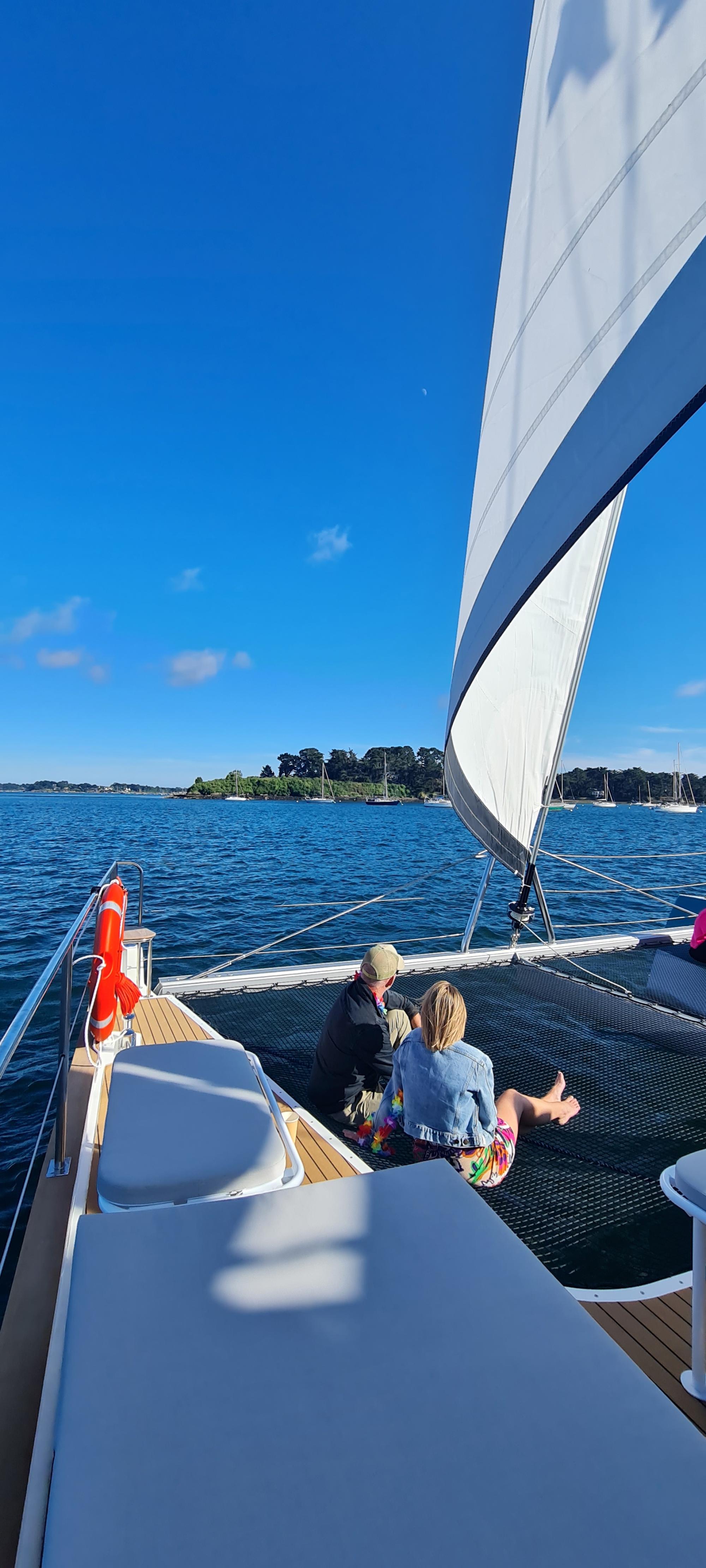 Embarquez pour un après midi à bord du catamaran OCTANT et découvrez la beauté de la baie de Quiberon pendant une navigation à la voile jusqu'à l'ile de Houat joyaux du Morbihan.